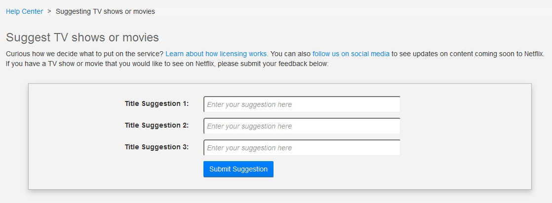 Netflix udostępnił niedawno formularz, w którym jego klienci mogą podać trzy sugestie tytułów filmów i seriali jakie by chcieli obejrzeć.