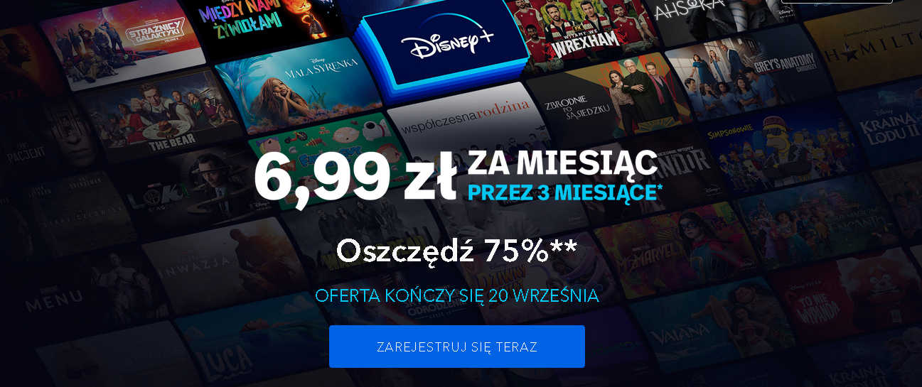 Począwszy od 6 września do 20 września, nowi i powracający klienci w Polsce mogą subskrybować Disney+ za 6,99 złotych miesięcznie przez trzy miesiące. By rozpocząć subskrypcję, należy wejść na stronę www.disneyplus.com.